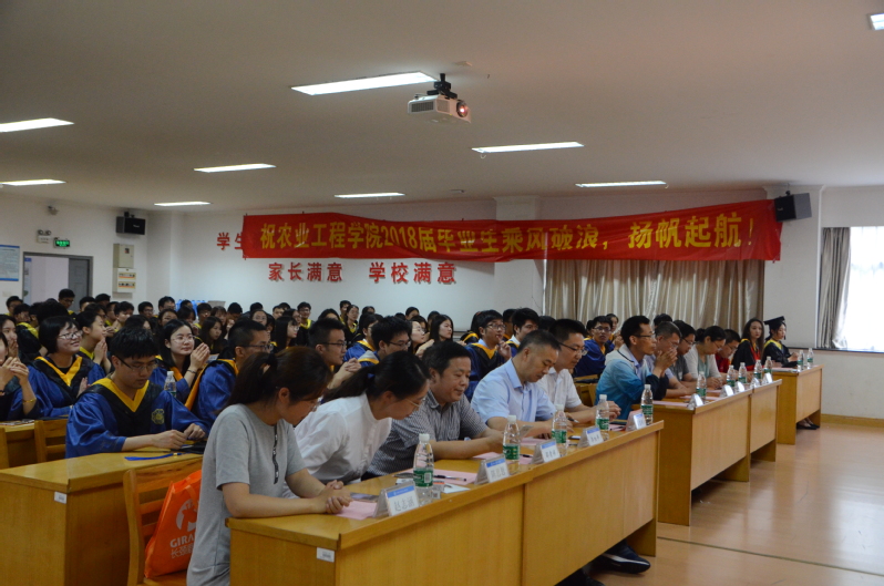6月19日下午,河海大学农业工程学院在水电馆401成功举办2018届研究生暨本科生毕业典礼。农业工程学院院长李同春老师,学院党委书记陈毓陵老师,副院长朱成立老师,院长助理徐俊增老师,农业工程系主任翟亚明老师,学院团委书记薛璟老师,各研究所所长,班导师,研究生导师代表以及100余名毕业生参加了典礼。同时到会的还有水利水电学院党委副书记戴玉珍老师,研究生教学秘书周昶老师,研究生辅导员赵志涵老师以及14级本科生辅导员陈思思老师。