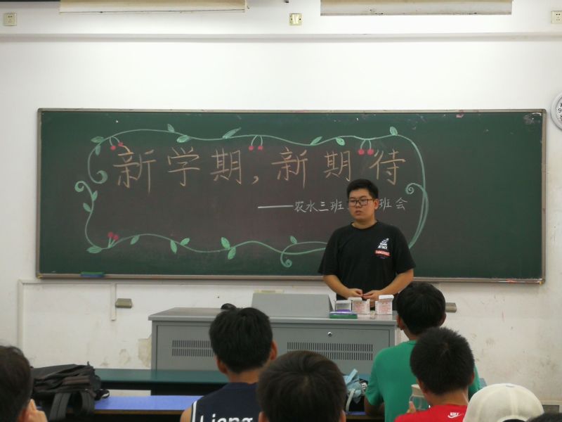 班会由班长高键同学主持召开,大家首先欢迎了新同学的到来,之后我班班导师丁继辉老师针对我班上一学年全班的整体学习成绩情况进行概述。对进步明显的同学进行表彰和鼓励,并对大二的我们提出了新的要求与期待。多将精力放在学习上,要合理分配好学习和工作生活的时间,努力在新学期中突破自我,取得学业上的进步!