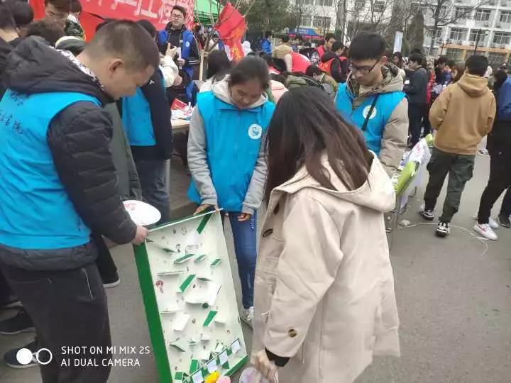 另有同学选中了雷锋精神大冒险的游戏,他们随机抽取志愿者提供的卡片进行大冒险,完成任务后便可获得迷你盆栽一个。