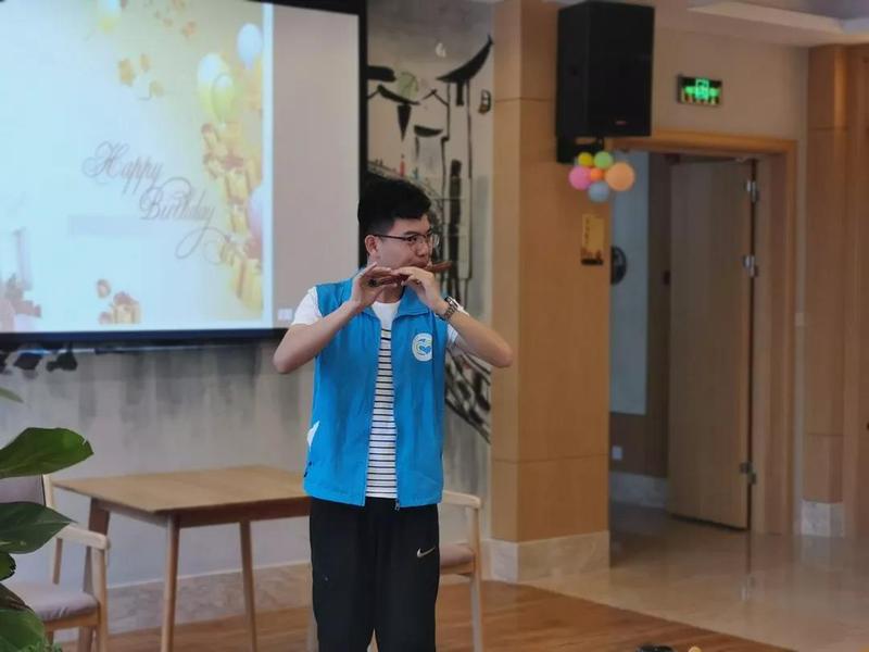 两首优美动听的曲子为今天的演出拉开了序幕,接下来的节目更是精彩,从台下爷爷奶奶脸上的笑容可以看出,志愿者们付出的准备和努力是值得的。其余志愿者给在场的奶奶们献上一支支康乃馨,院方还为五月过生日的老人准备了蛋糕,在这个温馨的节日里,这应该是台下老人们收到的最特别的礼物。表演在志愿者对爷爷奶奶们的祝福声中缓缓落下帷幕。