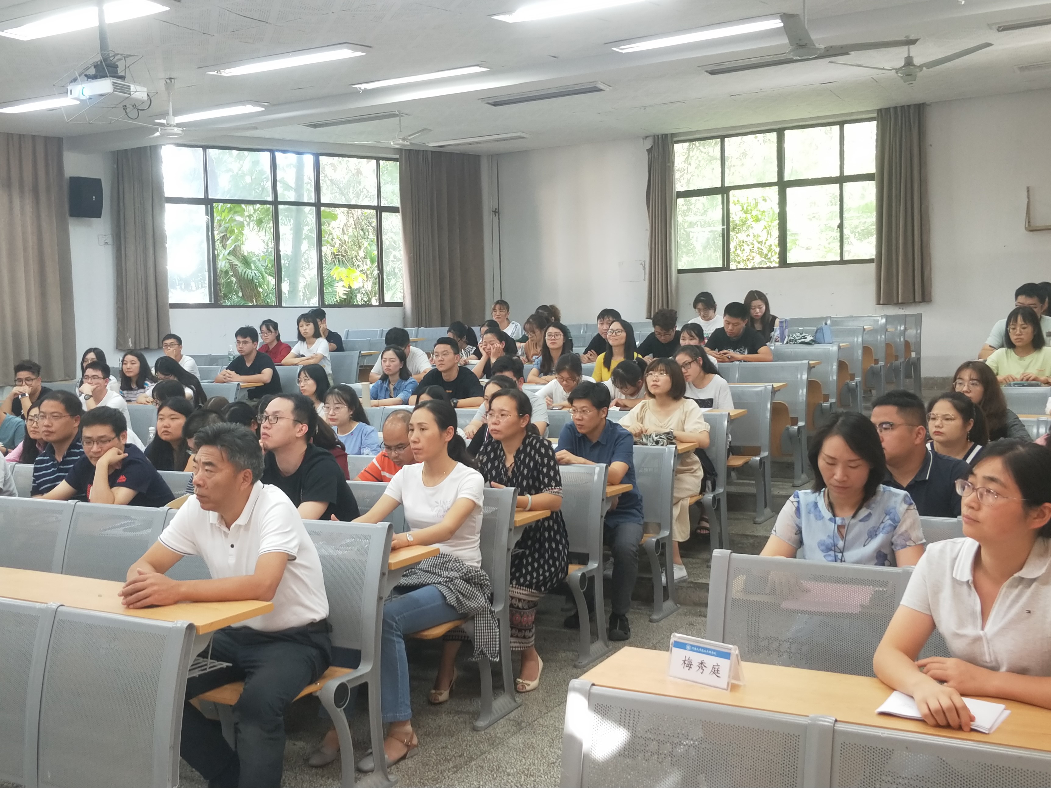 9月19日,为切实增强“不忘初心、牢记使命”主题教育集中学习研讨的针对性、实效性和感染力,农业工程学院举行主题教育辅导报告会,邀请中共江苏省委党校副教授、博士梅秀庭就学好用好《习近平新时代中国特色社会主义思想学习纲要》——深入开展“不忘初心、牢记使命”主题教育作辅导报告。会议由学院党委副书记郑润主持,学院全体党员参加此次报告会。