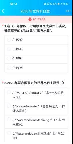 讲座结束后随即举行以“世界水日,中国水周,节水优先”为主要内容的知识竞赛,竞赛题目包括此次讲座中陈院长关于水系保护的相关研究、中国河流以及国内关于水的相关管理制度,同学们积极参与答题!