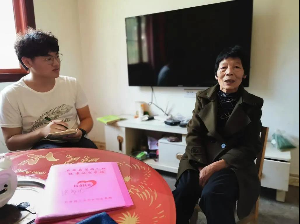 朱老太太的儿子在外地打工,平时只有她和她孙子两人,她孙子正处于五年级,在学校住宿,平时她一个人在家也十分孤独。调研完成后,刘文宇帮助朱老太太一起打扫了屋子。