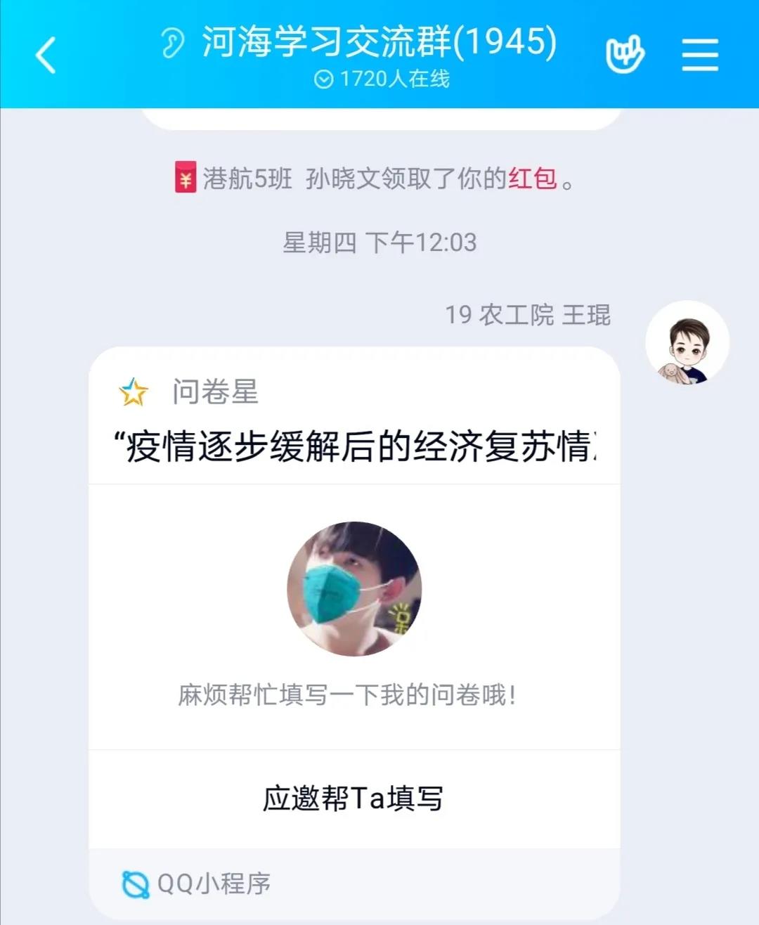 202088日至9日,农工院2019级农业水利工程专业王琨同学开展了以疫情逐步缓解后我国经济复苏情况为主题的社会调研,本次调研通过线上发送调查问卷收集各方面信息,通过线上采访市民了解疫情后经济恢复情况,最终通过处理分析调查数据得到了详细丰富的调研报告,调研活动圆满结束。