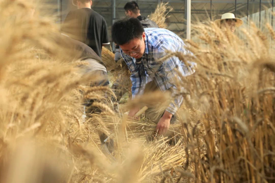 割麦体验赛正式开始,各组成员进入麦田抢收麦子。同学们经过小心翼翼地尝试后,很快进入了有条不紊的收割状态。现场气氛紧张活跃,不少未能参加比赛的同学都忍不住进入麦田进行体验。比赛结束后,国洪梅老师对各组收割麦田的表现进行点评,她对同学们劳动实践的热情表示了肯定。徐俊增副院长对此次活动进行了总结,希望同学们能够通过劳动实践亲近土地、熟悉土地、热爱土地,为以后深入的专业知识学习打下良好的实践基础。