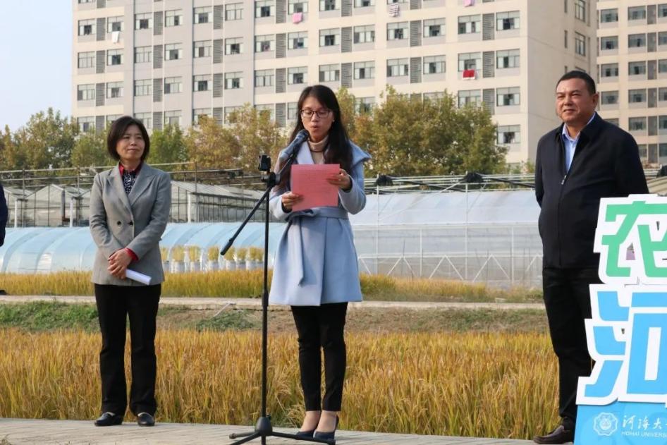 陈书记首先介绍了参加本次活动的领导和闭幕式活动内容。随后,校党委副书记、纪委书记孟新教授致闭幕辞。孟书记对河海大学第二届丰收节的成功举办表示了祝贺,并且高度肯定了活动在农工院的主办和多部门协同下,丰收节已经成为全校师生交流共融的文化平台,成为展示河海涉农学科的文化名片。她指出,农业作为国家的根本和命脉,关系到社会安定和整个国民经济的发展。党和国家历来高度重视“三农”工作,党的十九大报告更是将乡村振兴列为国家战略,提出了不断夯实国家粮食安全保障基础,加快高标准农田建设的任务要求,凸显了国家粮食安全的重要性和勤俭节约、珍惜粮食的必要性。因此提倡节约粮食、反对浪费势在必行。同时,她希望农工院的师生能充分发扬老农水人优良传统和治学作风,以立德树人为根本、以强农兴农为己任,共同把我校的涉农学科建设好发展好,为推进农业农村现代化作出新的更大贡献。