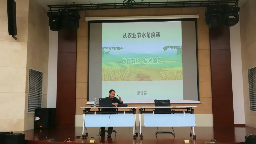 9月23日下午,威廉希尔中文网站平台在行政楼一楼报告厅举行节水讲座。操信春教授以“从农业节水角度谈——厉行节约,反对浪费”为题,向2020级研究生同学们做报告。