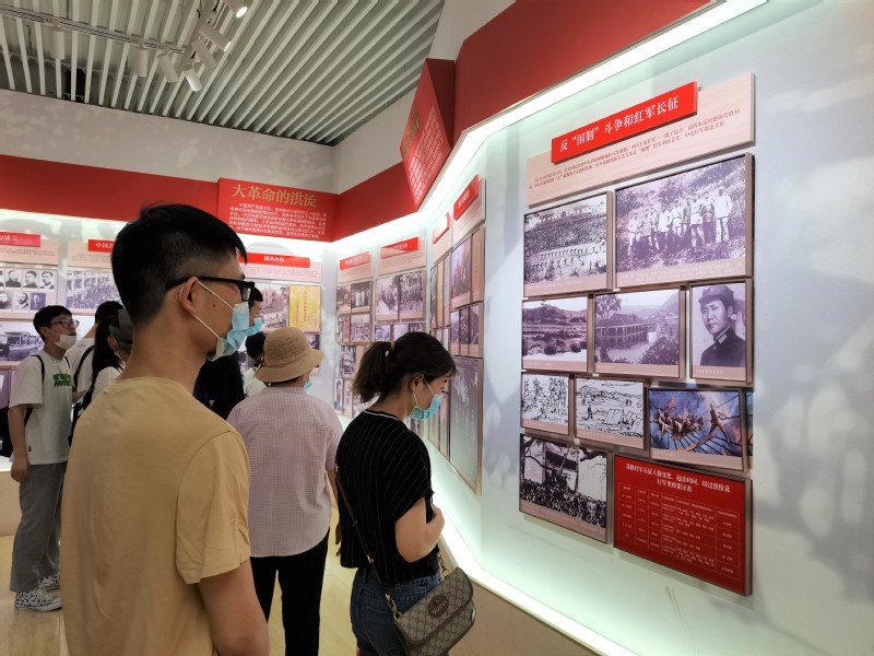 一进纪念馆,成员们便见一座雄伟的周恩来铜像矗立于露天庭院的正面墙前,铜像高3.2米,重900公斤,神形兼备,以周恩来同志当年步出梅园新村30号大门的照片为原型。透过铜像,支部成员们看到了一个坚定、沉着、机智、从容的革命家形象。随后成员们来到国共南京谈判史料陈列馆。陈列馆位于梅园新村街道西侧,正中是一座高6.5米、宽3.3米的大型汉白玉浮雕,浮雕上镌刻着中共代表团领导成员和部分工作人员的群像。陈列馆中,成员们阅览了一系列专门介绍国共南京谈判的图片、文物和文献资料等,通过藏品回顾了国共南京谈判那段惊心动魄的历史,体会时代伟人的风采,并感受到老一辈共产党人艰苦朴素的生活作风。