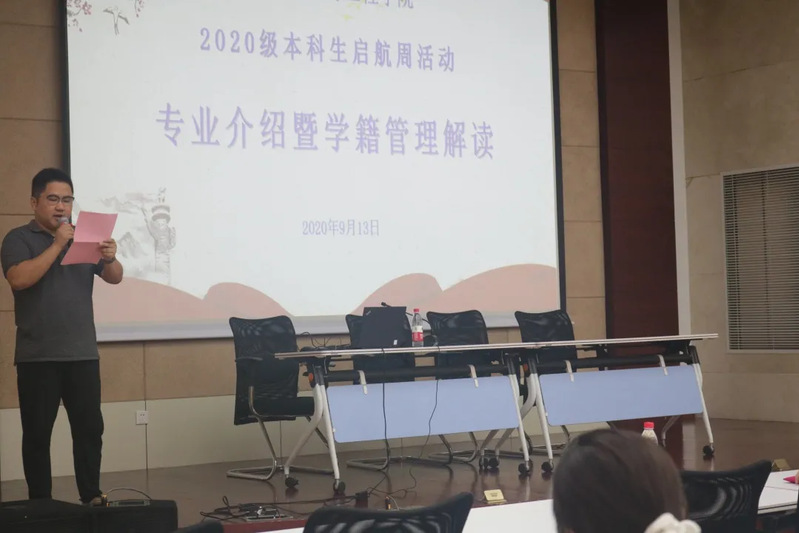 9月13日上午,威廉希尔中文网站平台举行了2020级专业介绍和学籍管理解读活动。学院副院长朱成立教授、教学秘书王薇薇老师、2020级辅导员李健老师以及全体新生参加了本次活动。