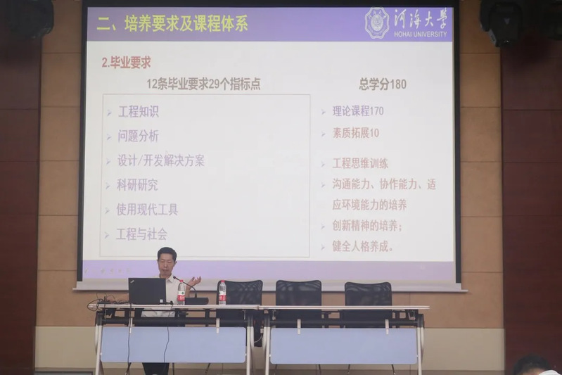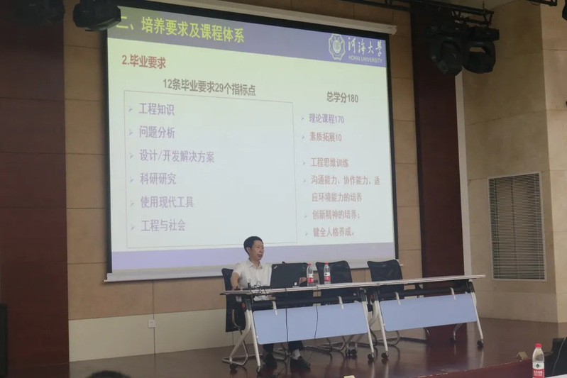 随后,副院长朱成立教授就农业水利工程专业和土地整治工程专业进行了详细的介绍,向新生们讲解了两大专业的专业内涵及专业地位、培养要求及课程体系、专业特色及就业前景。这不仅使大家对大学学习内容有了基本认识,而且帮助大家树立了专业自信心,提升了专业认同感。最后,朱副院长对新生们接下来的大学生涯提出了几点建议。一、要尽快熟悉学校学籍管理等相关规章制度。二、尽快学会学习。要制定计划,善于学习;要会听、善记、及时复习;做到勤学好问,动手练习;能深能简,抓住重点;处理好知识和能力的关系。三、要做到“四自”——思想上要自强,言行上要自律,学习上要自觉,生活上要自理。同时,朱副院长也对新生们给予了殷切的期望,相信大家能在河海这片沃土上茁壮成长。