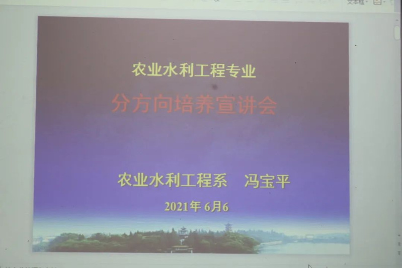 本次动员会邀请到了冯宝平教授和邵光成教授来为19级同学们做专业介绍。农业水利工程专业包括农业水利和水土保持两个方向。冯宝平教授通过数据,向同学们分析了两个方向主修科目的特色和差别、近两年的保研、考研和就业情况。她强调,水土保持专业方向未来发展和就业前景十分广阔。