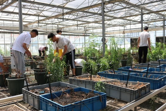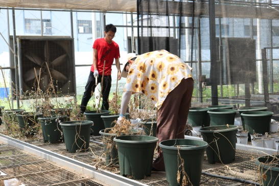 农业水利工程19级学生于节水园区大棚内开展清理工作