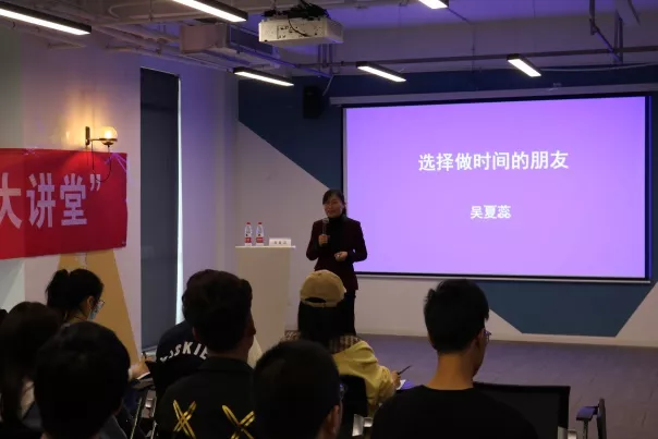 吴夏蕊老师向到场的六十多位听众热情而详细地分享了数十年来她的创业历程和创业成就。她诚挚地建议我们把握好当下的时间,规划人生目标,成为时间的朋友。在演讲中,她指出,用长远的眼光看问题,做选择,时间自然会成为你的朋友。她认为,学生们的时间不应该只消耗在电子设备和简单的学习工作上,而应该多多与前辈交流共同,尝试参与集体活动,积极社交、拓宽视野,为以后的发展积累经验拓宽人脉。