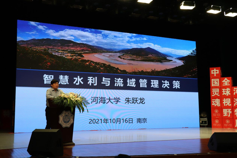 朱跃龙教授为本次“智慧水利与现代农业”主旨报告会作“智慧水利与流域管理决策”特邀报告。他全面、系统、深入地介绍了智慧水利产生的背景与内涵,并通过具体课题介绍了流域管理与决策。他指出构建智慧水利体系,以流域为单元提升水情测报和智能调度能力是国家战略要求,按照“需求牵引、应用至上、精细管理、精准决策”的具体要求,在数字孪生流域的基础上,实现“预报、预警、预演、预案”。朱教授的精彩报告赢得了在场师生的热烈掌声。
