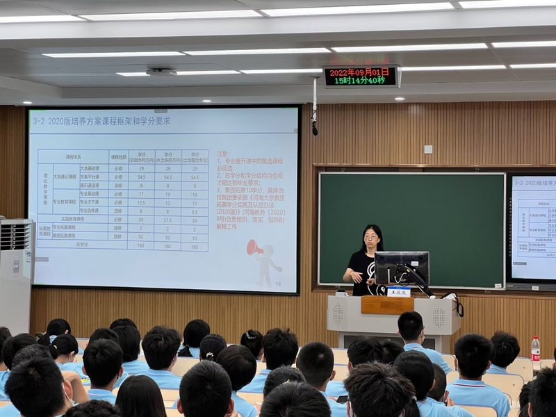 为促进教育教学融合,帮助2022级新生同学们尽快适应在大学的学习与生活,增强学生对于本科教学活动的理解与认识,9月1日,学院通过线上线下相结合的方式,为22级新生们开展了“启航周”系列活动——本科教学管理介绍大会,会议邀请到学院教学秘书王薇薇老师带领大家了解本科教学管理相关规则,活动由学院2022级本科生辅导员李健老师主持。