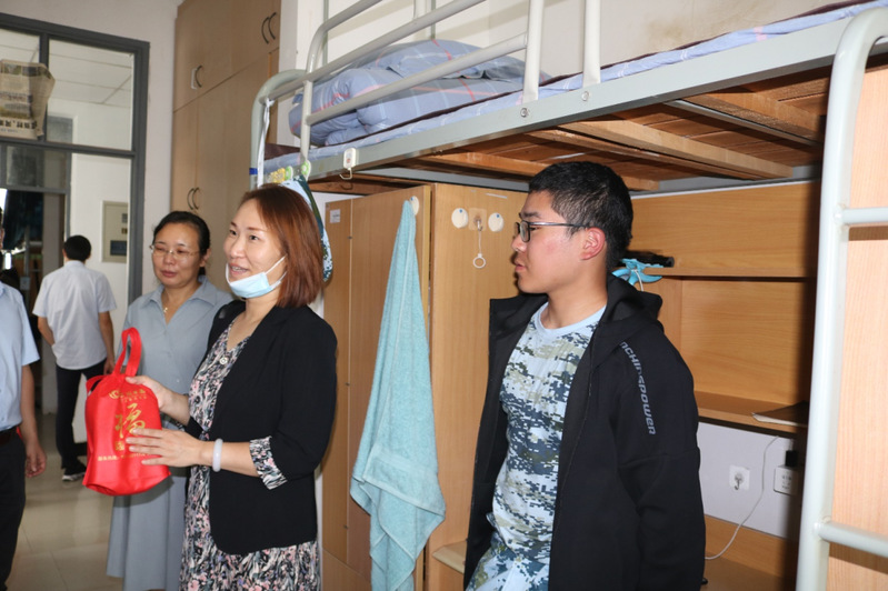 为了解学生思想状态,关心关爱学生成长,99日,威廉希尔中文网站平台院党委副书记郑润,副院长张洁,2022级辅导员和班导师一行走进新生宿舍,为同学们送上了精心准备的节日礼物——中秋月饼,带来了学院对新生同学的节日问候与美好祝福。