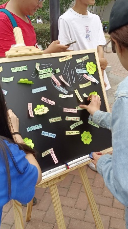 925日,农工院科协成员在22舍楼下向活动参与者介绍了本次活动的主题,并为同学们发放了科普读物和活动卡片。同学们了解了相关知识后,在展板上留下了自己对水和气候变化的看法及感悟。927日,工作人员对活动卡片进行了回收,并选出其中的优秀作品进行展示。