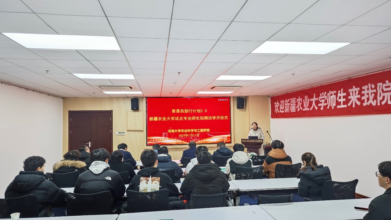 1月13日,访学团举行短期访学开班式,学院党委书记刘兴平出席活动并致辞。活动期间,同步开展了河海大学-新疆农业大学“1-1-1”本科生导师制(即1位河海大学教师、1位河海大学研究生对接1位新疆农业大学慕课西行试点专业本科生)签约仪式。