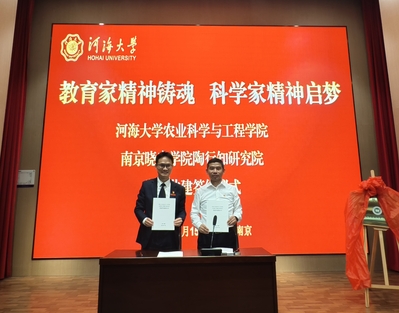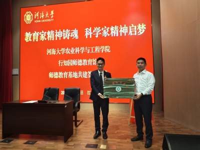 在师德馆报告厅,威廉希尔中文网站平台党委书记刘兴平与南京晓庄学院陶行知研究院党支部书记、陶行知纪念馆何文秋馆长共同签订师德教育基地共建协议和党建共建协议,并为师德教育基地揭牌。学院院长徐俊增主持共建及揭牌仪式。