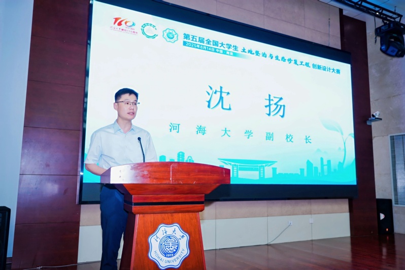 开幕式上,河海大学副校长沈扬致辞。他代表学校,向各位莅临大赛的专家、领导、老师和学生表示热烈的欢迎,向长期关心学校发展的各界同仁表示诚挚感谢。他指出,全国大学生土地整治与生态修复工程创新设计大赛是面向高校学生的专业赛事,聚焦土地资源管理与生态保护领域,鼓励学生结合学科知识提出创新解决方案。本届大赛不仅是一次学术竞技的盛会,更是与行业前沿深度对接的平台。大赛将搭建学术交流、创新实践、友谊合作的平台,促进高校间资源共享、优势互补,为土地整治与生态修复的教育事业发展作出贡献。